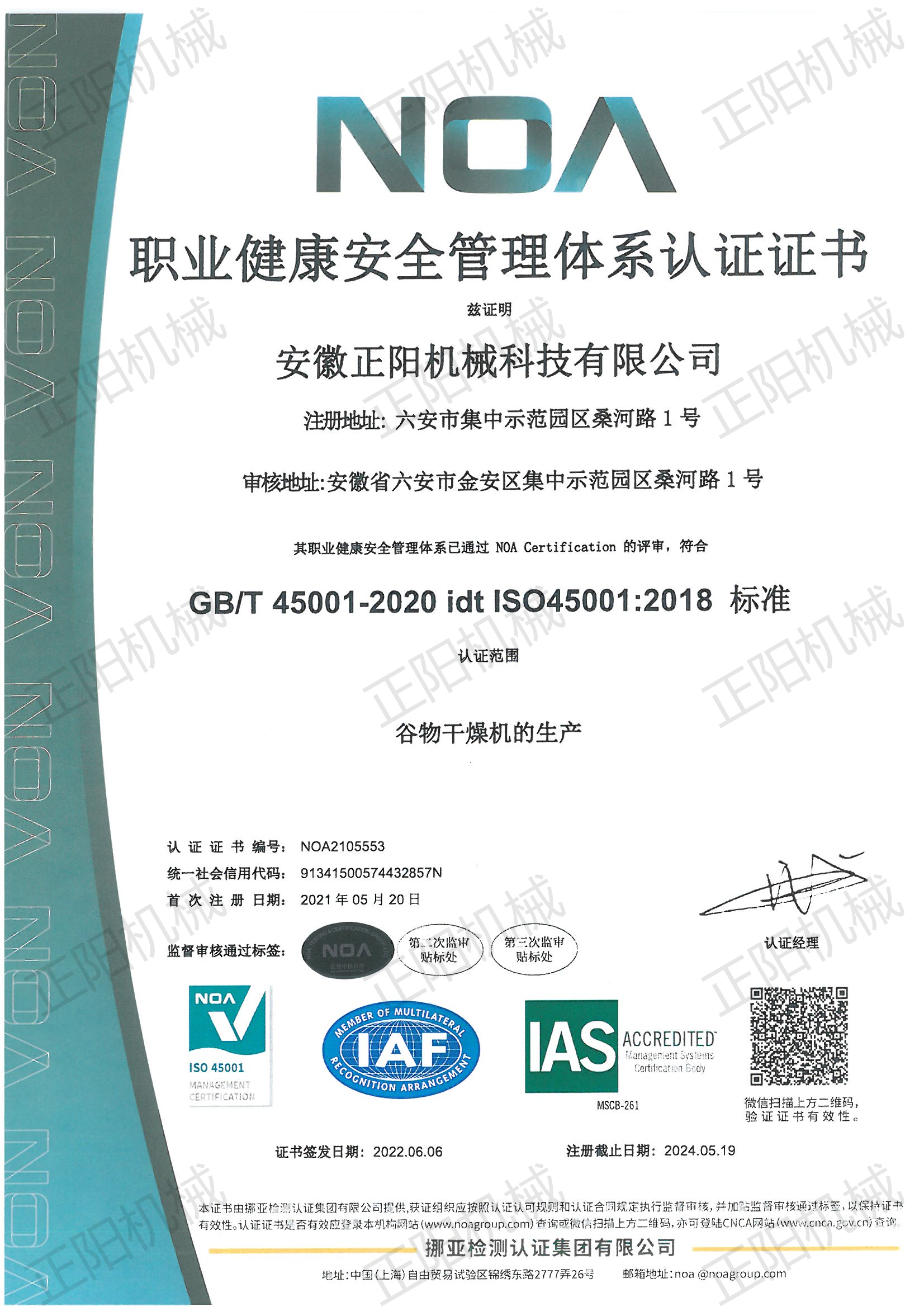 職業(yè)健康安全管理體系認(rèn)證證書