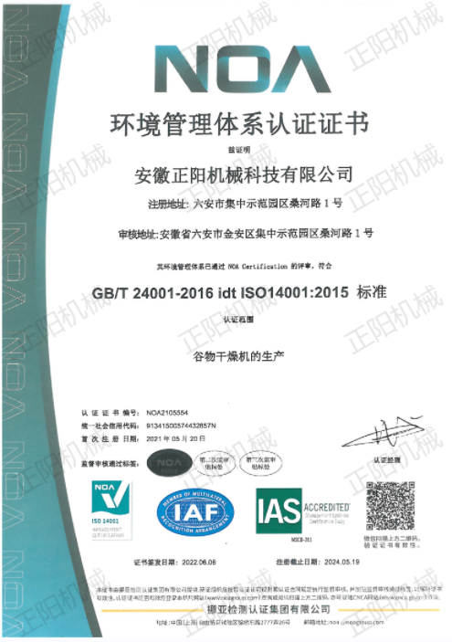 環(huán)境管理體系認證證書