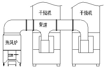 谷物干燥機(jī)熱源為熱風(fēng),其供熱系統(tǒng)為熱風(fēng)爐(如配蒸汽鍋爐時(shí)需在進(jìn)風(fēng)口處安裝換熱器,但須滿足谷物干燥機(jī)熱風(fēng)需求),一般情況下一臺熱風(fēng)爐可供1~3臺谷物干燥機(jī)使用(詳見熱風(fēng)爐配置)。